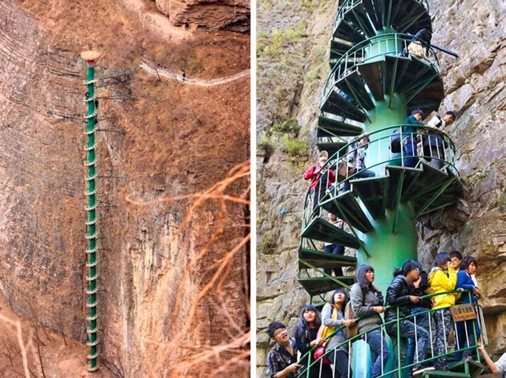 Тези стълби с право могат да бъдат наречени умопомрачителни. Спирала, която доближава височина от съвсем 91м, води до върха на планината Тайханг. Желаещите да се изкачат до върха, който е височината на 30-етажна постройка, би трябвало да подпишат документ, че са предизвестени за заплахата и са изцяло здрави.