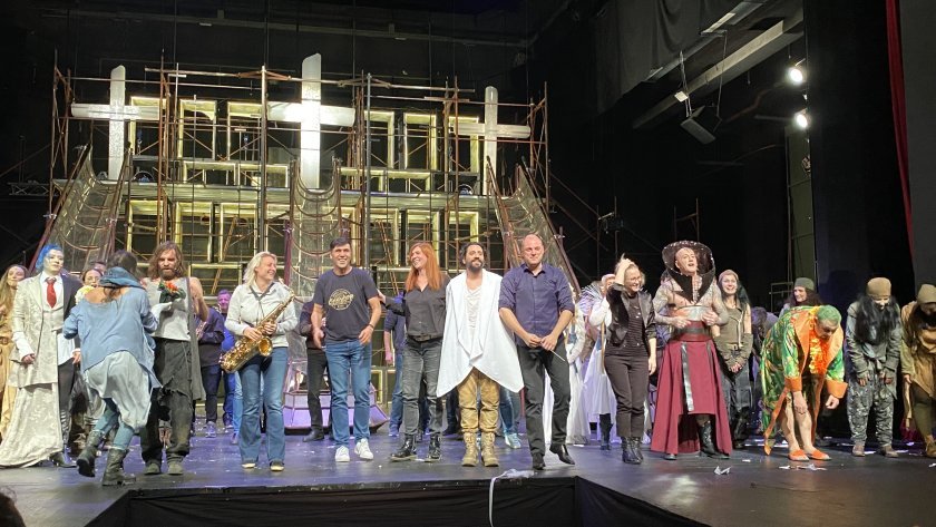 Екипът на " Исус Христос суперзвезда " по време на премиерата на спектакъла през ноември 2021 година в Пловдивската опера - (отляво надясно) - Цвети Пеняшки, Керана, Никеца, хореографът Явор Кунчев, режисьорът Веселка Кунчева, Владимир Михайлов, диригентът Константин Добройков, Константин Кацаров и Евгений Арабаджиев