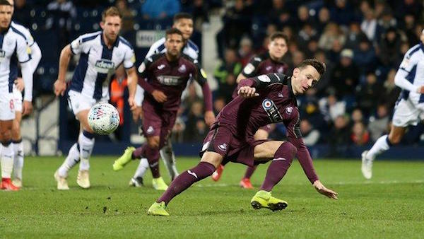 Swansea lost 3-0 yesterday at West Brom. CCV got his clearance wrong on the 3rd goal in the 85th, and Swansea were tremendously unlucky not to score several times, but without question, Bersant Celina's missed penalty was the highlight of the match. pic.twitter.com/OlHgFkhHqk