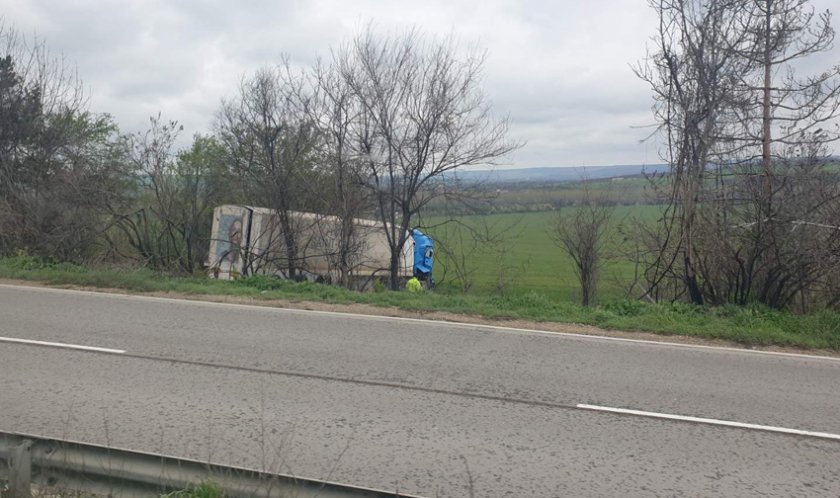 Тирът е бил в отсрещната страна на платното, минал е през мантинелата и се е забил в дере.