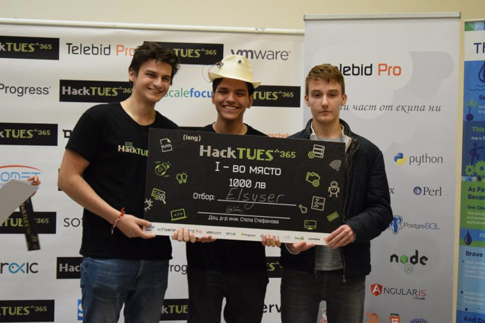 Отборът на „ Elsyser “ е огромният победител в конкуренцията HackTUES тази година (източник: ТУЕС)
