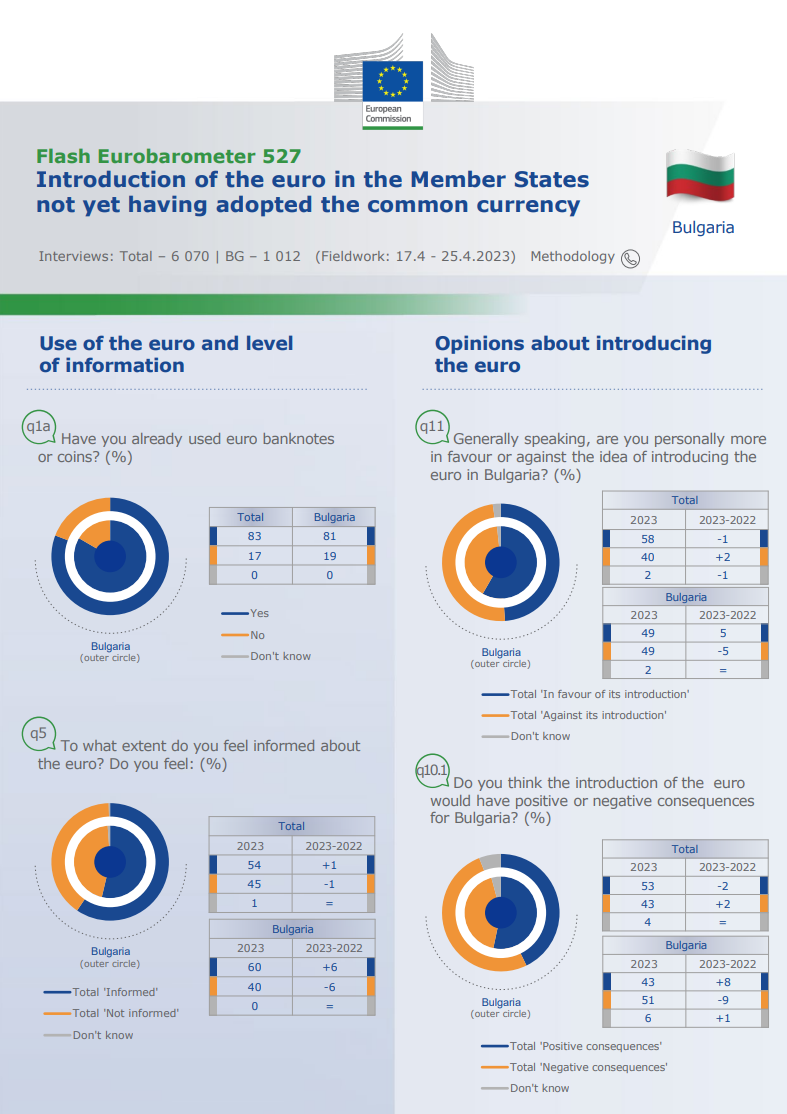 Българите са показали висока осведоменост - 60% смятат, че са наясно какво ще се случи, в случай че националната валута бъде детронирана, срещу по-нисък рейтинг от 54% по отношение на междинната осведоменост във всички шест страни. 6% е растежът на осведомените българи по отношение на 2022 година.