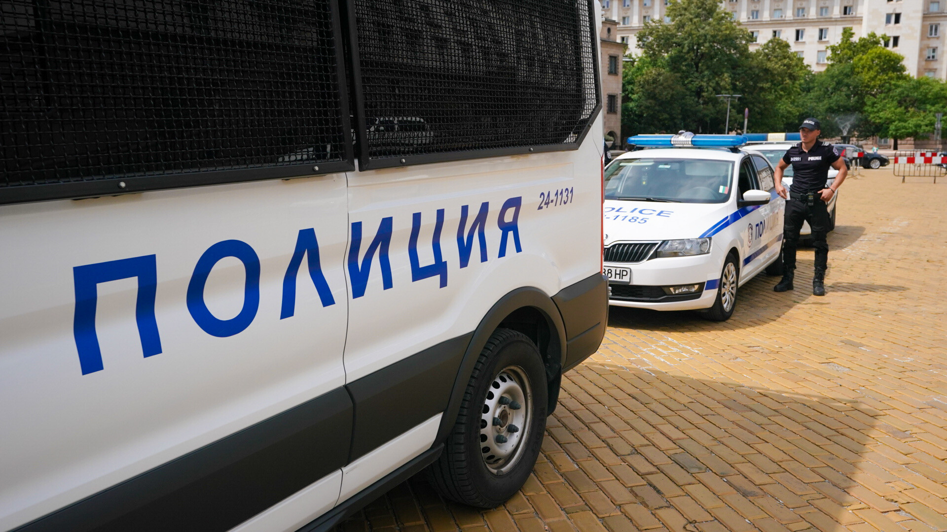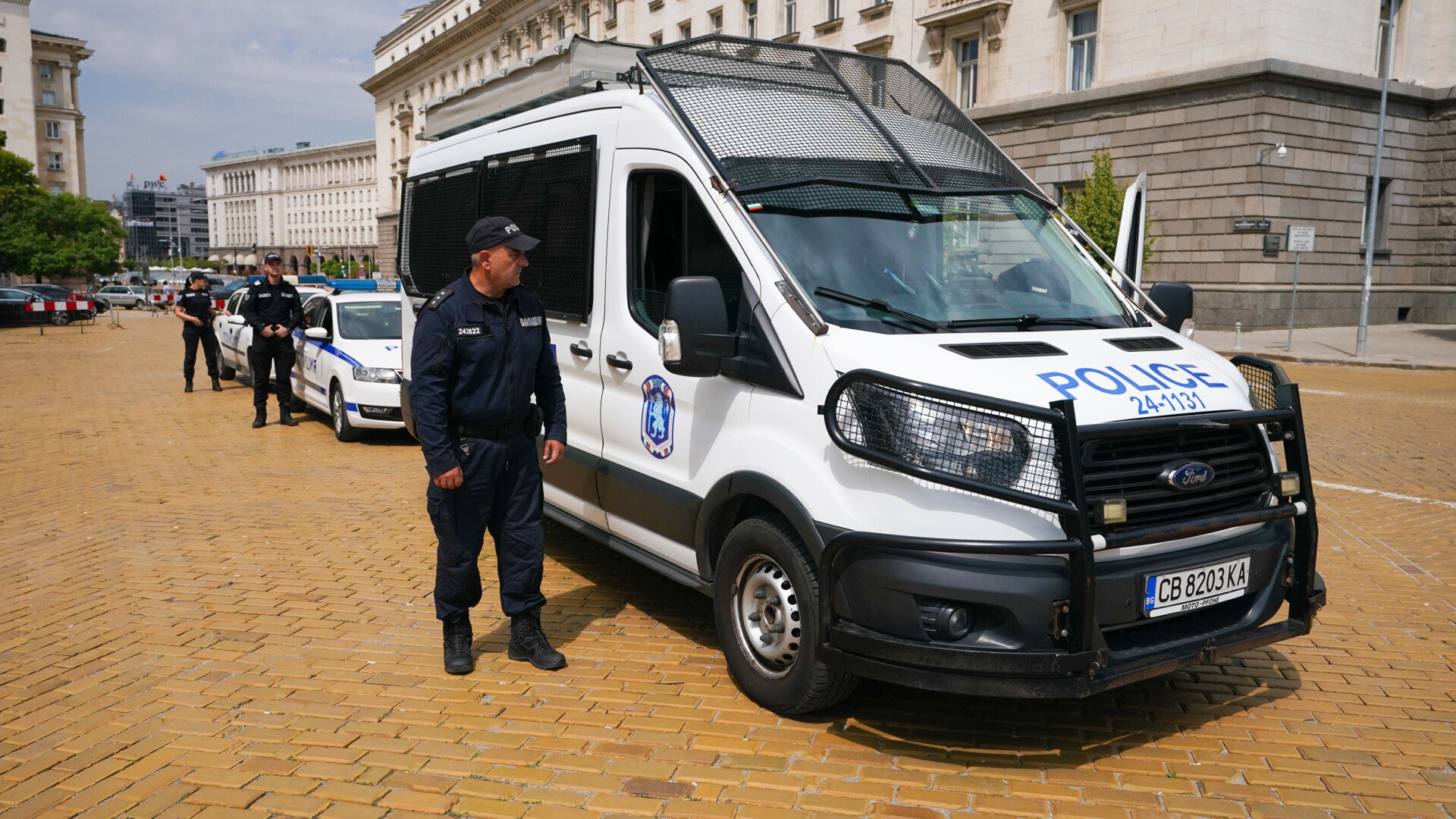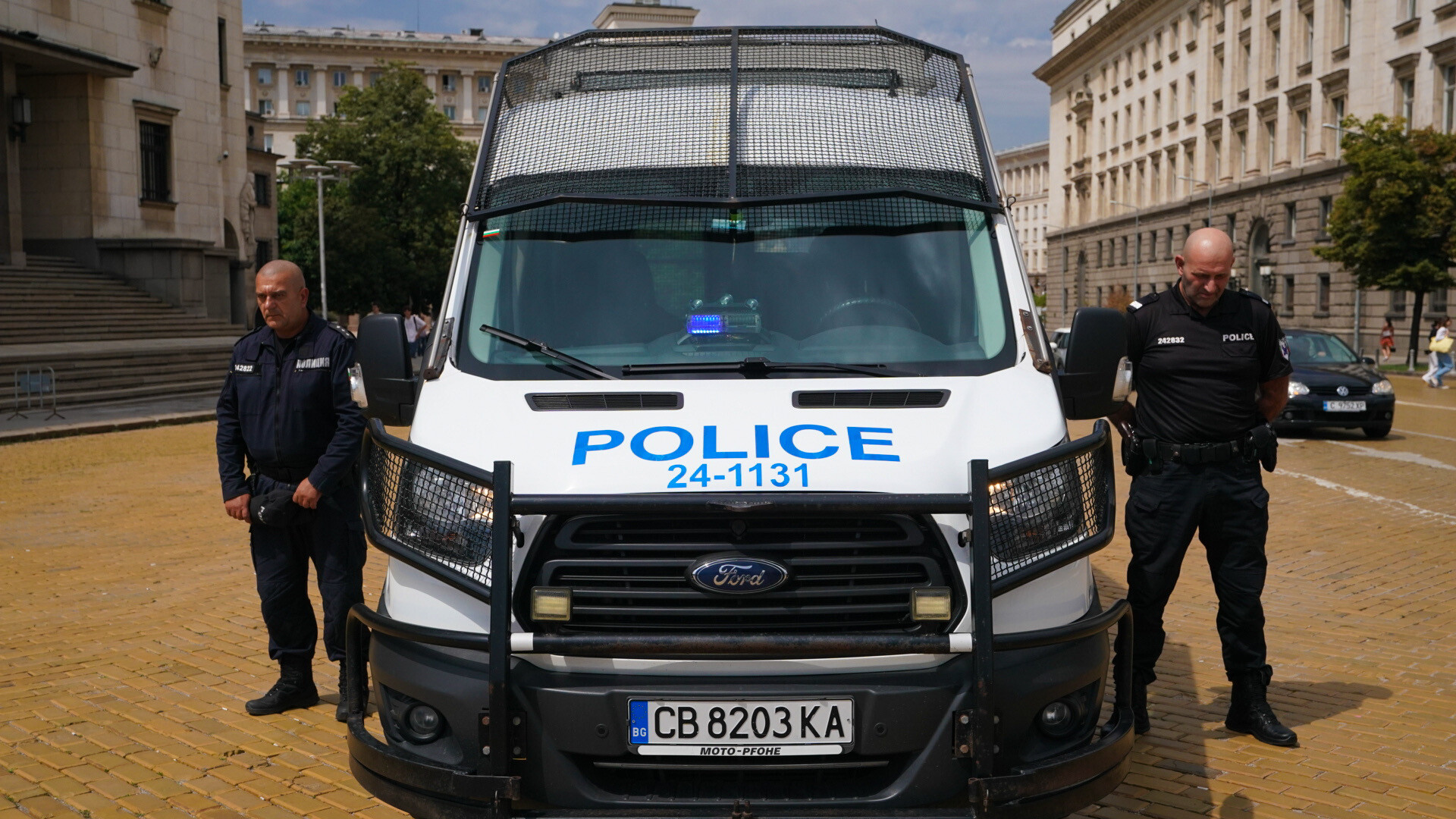 Пред постройките на Българска народна банка и Столичната пожарна екипи на Министерство на вътрешните работи застанаха спокойно до колите си и включиха звукови и сигнални сирени в символ на респект.