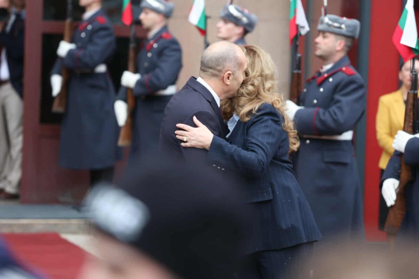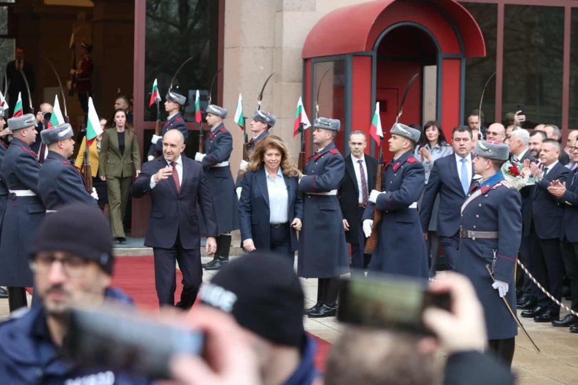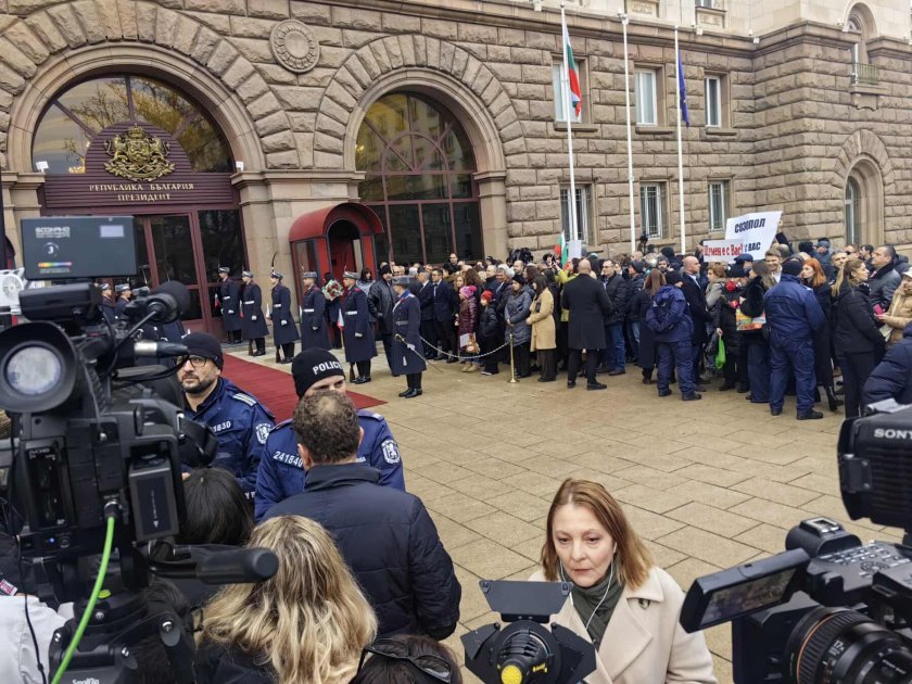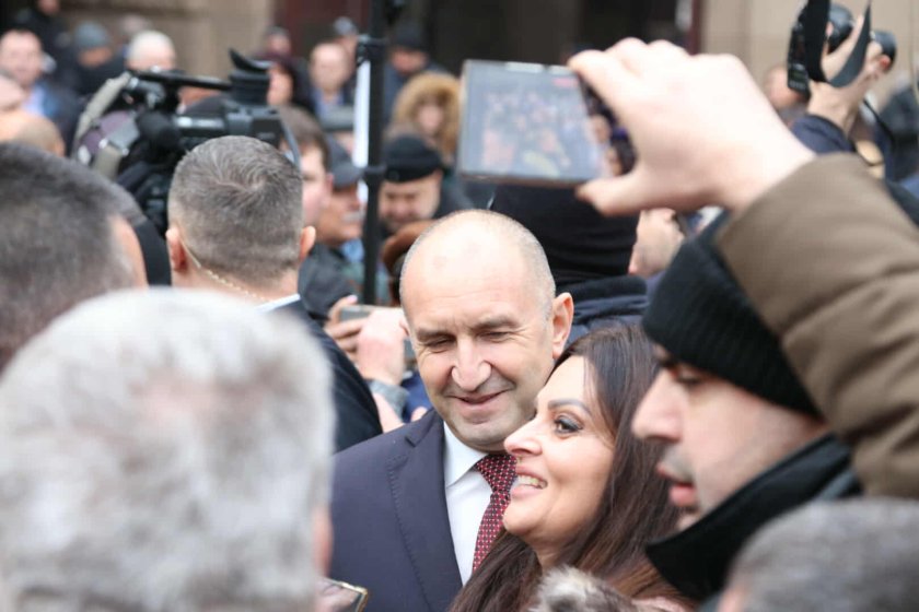 Точно в 16.00 ч. президентът Румен Радев напусна постройката на " Дондуков " 2. Той беше изпратен от новия държавен глава Илияна Йотова. А начело го чакаха стотици симпатизанти, които се поздравяваха между тях с " цветущ празник ".