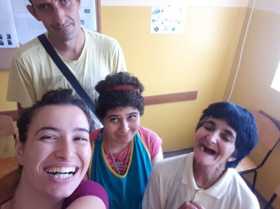 Точно в 8 часа Габи и Маруска стопират пред у дома, с цел да ме вземат за следващото им пътешестване. Крайната точка за тази събота е домът за хора с физически увреждания „ Ильо Войвода ” в Кюстендил. Габи е 26-годишно къдраво момиче със инфекциозен смях, което от 4 година е доброволец в дневния център за хора с интелектуални усложнения „ Светът на Мария ” в София, а от 2 година посещава и центъра „ Св. Марина ”, също за хора с умствени увреждания. В рамките на към час всеки петък Габи прави йога на смеха, игри и релаксации в двата центъра. Последиците от тях са необятни усмивки в хора, с които няма доста искащи да се смеят или играят.