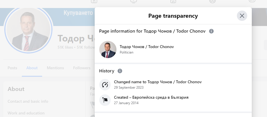 Т.нар. публична страница на Тодор Чонов е купена и преименувана напълно неотдавна. Видно от историята й, която всеки може да види, въпросната страница е съществена през 2014 година.
