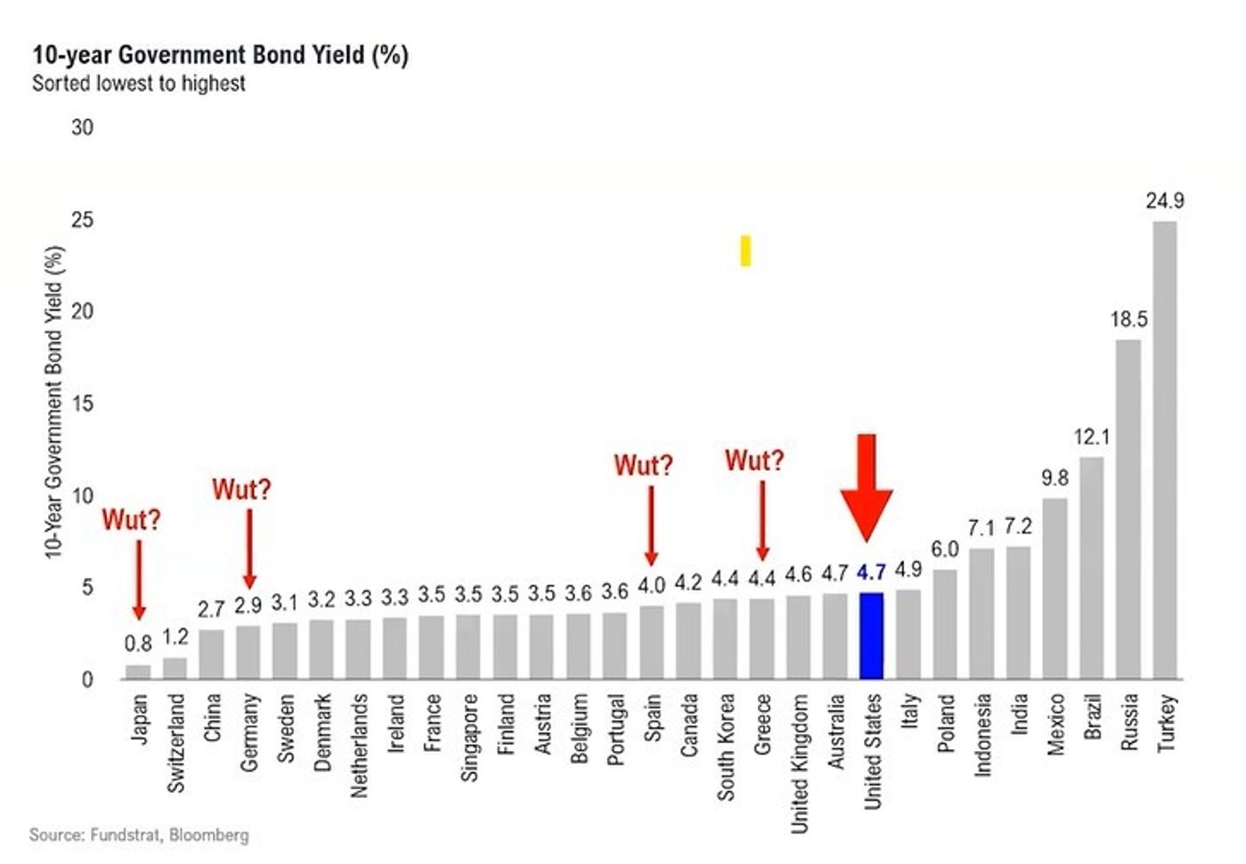 Интересно е, че темповете на инфлация в Германия, Испания и Гърция са по-високи от тези в Съединени американски щати, а Япония не остава по-назад. Лий също по този начин уточни, че Съединени американски щати не имат по-рискова валута, която да оправдае разликата в доходността.