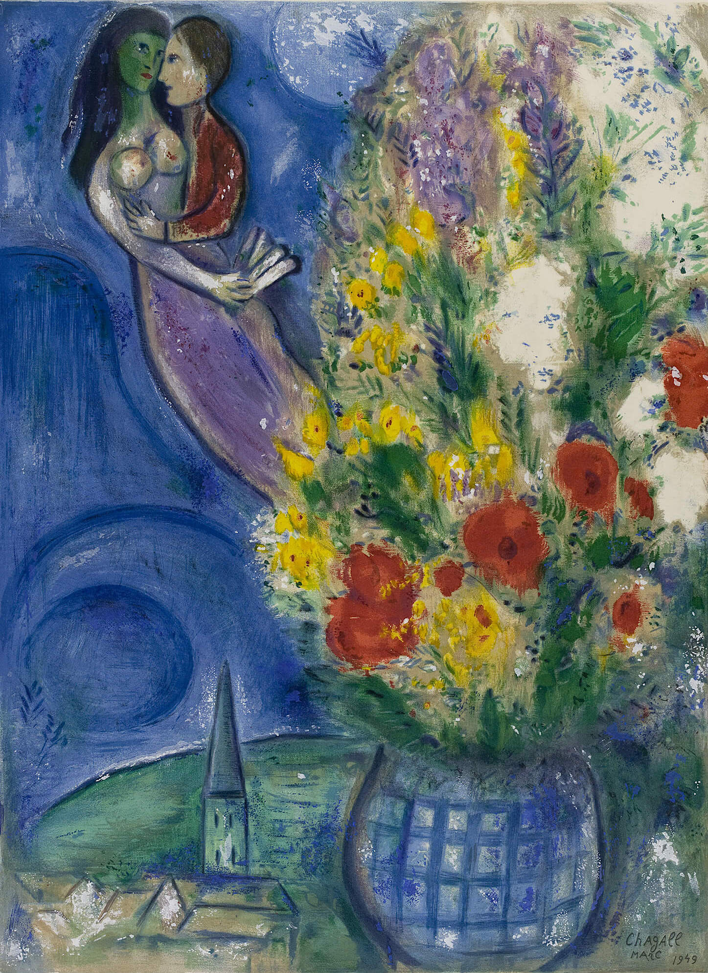 Pair of Lovers and Flowers, 1949, Marc Chagall