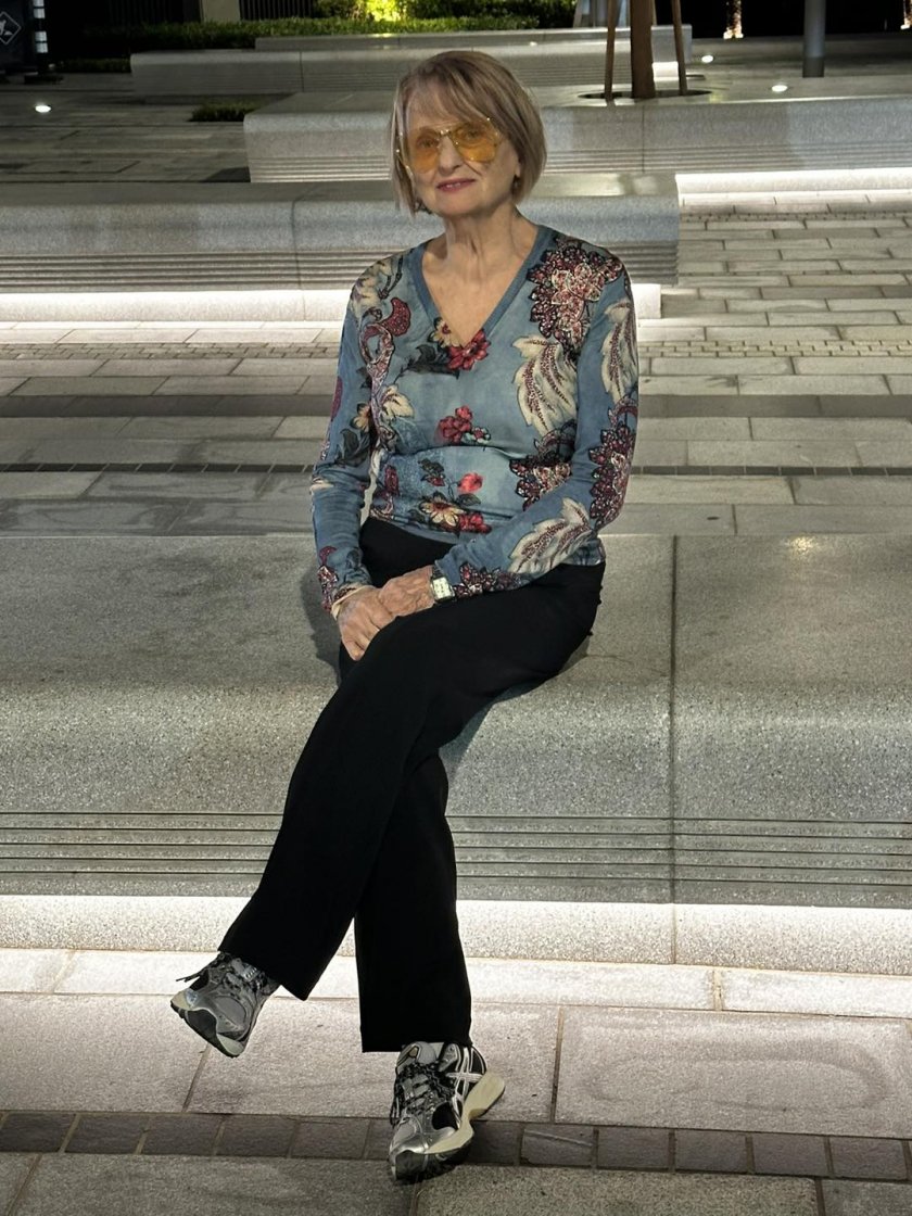 Мама също е блестяща и очевидно се е възползвала от козметични процедури с хиалуронови фиулъри, тъй като по лицето й няма и помен от бръчки, въпреки от дълго време да е трансферирала 70-те.
