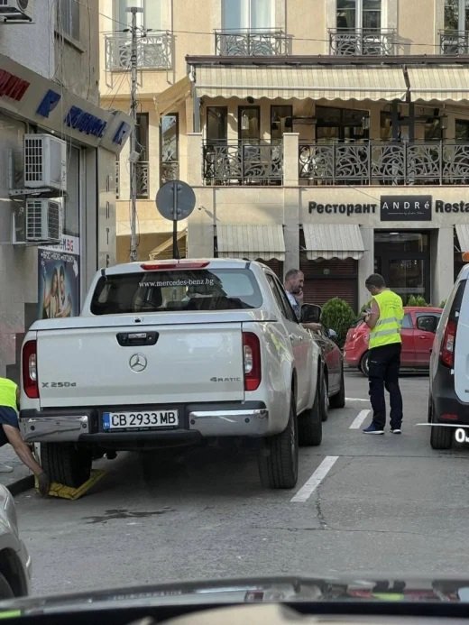 Топготвачът началник Андре Токев отново го закъса в центъра на София с прословутия бял пикап Мерцедес, който преди 2 години му изкара 3-месечна ефикасна присъда. Този път обаче случаят беше лек - наоколо до ресторанта на Токев на ул. " Добруджа " му беше сложена скоба.