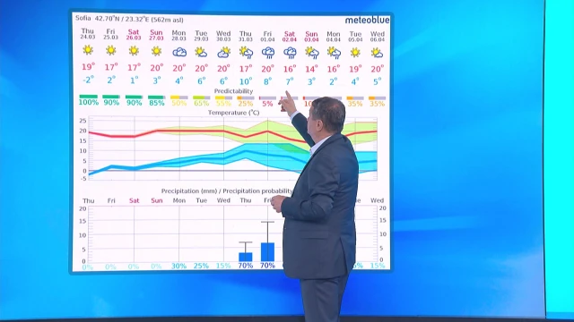 Около 1 април се чакат превалявания и температурите ще паднат с няколко градуса. В началото на април към този момент минималните температури ще са позитивни.