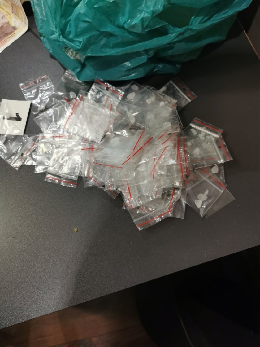Задържани са четирима души. Претърсени са три адреса. Иззети са 250 пликчета с бяло кристалообразно вещество, реагиращо на кетамин, близо 70 розови хапчета, реагиращи на метаамфетамин, канабис.