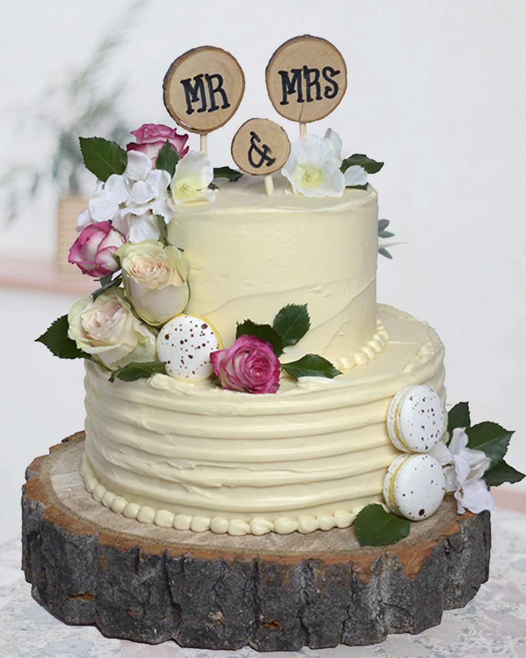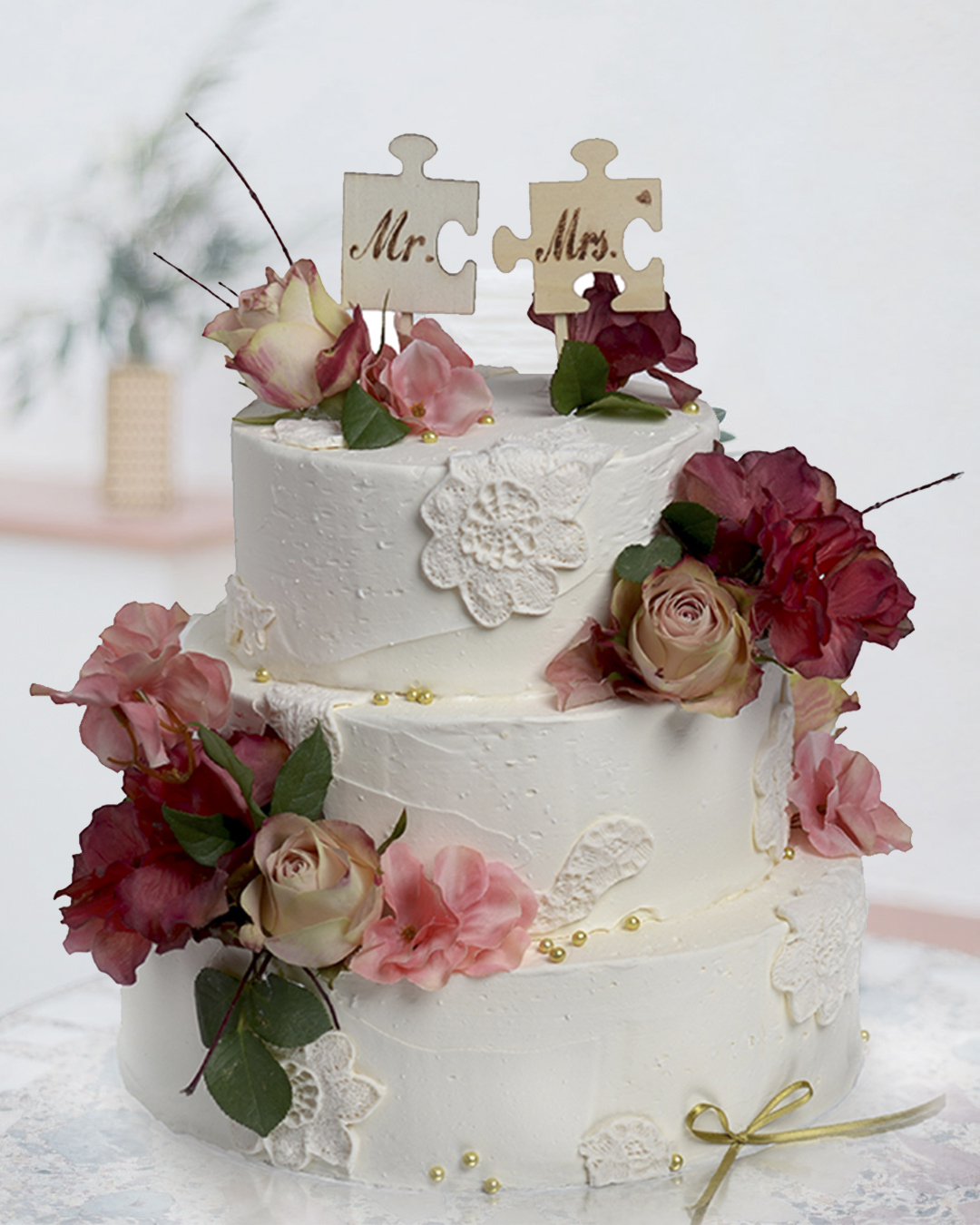Натурални цветове и дървен топер пъзел Mr&Mrs.