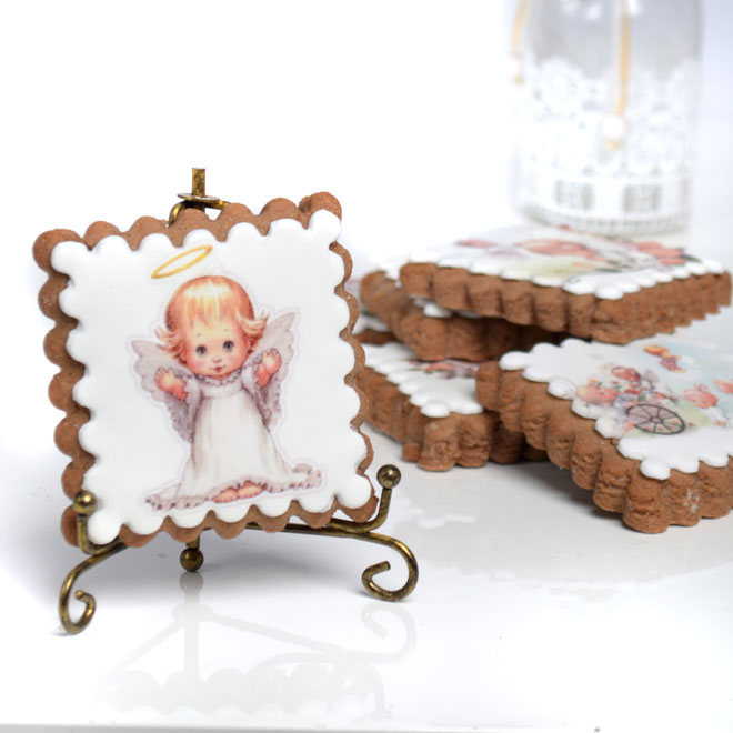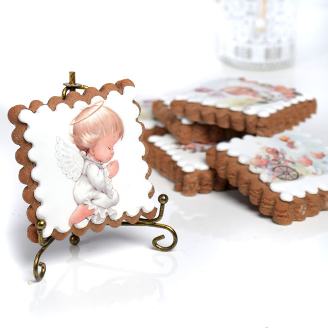 - кутия прясно изпечени меденки с същински мед и ароматна канела или декорирани меденки със захарно тесто с разнообразни рисувани ангелчета.