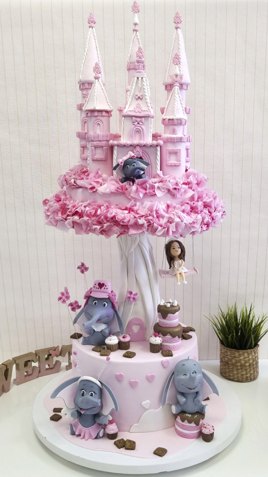 Нежна и розова с огромен баснословен палат, слончета и клатеща се принцеса. Като в същинска приказка. Така наречената " Левитираща торта " има за цел да пресъздаде илюзията, че част от украсата на тортата се рее във въздуха над нея.