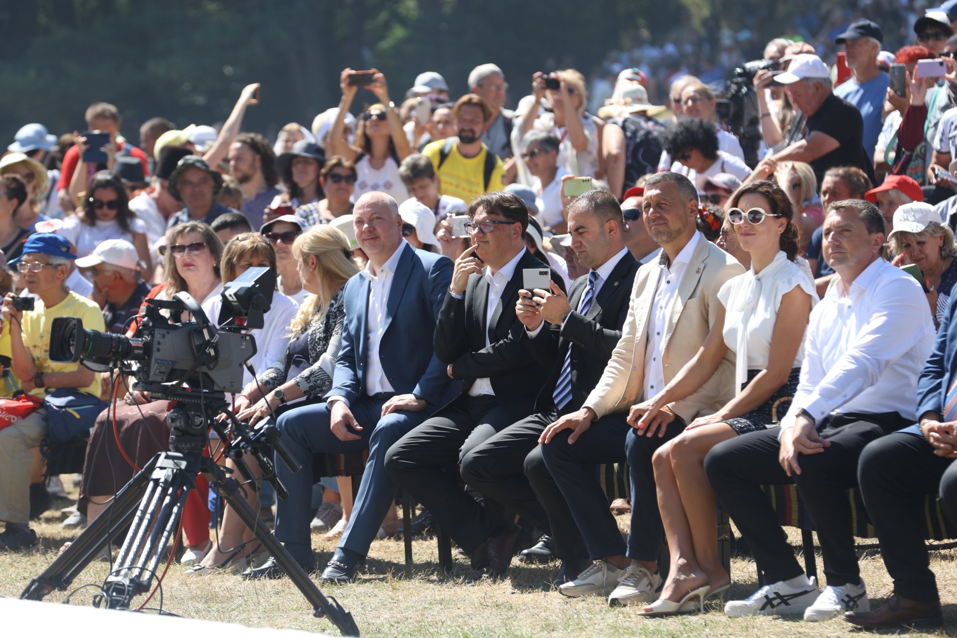 Българската шевица съчетава в себе си онази символичност на земното и неземното - елбетицата, мечата стъпка, петлето, всичко това, което прави тази мистичност на националното творчество неповторима, уточни министър-председателят. Всичко това тук през днешния ден на това място, в което има хубостта на българската природа, цветето, което сте закичили и усмивките, които ни карат да се усещаме щастливи, че сме дружно, щастливи, че сме дружно като народ, сподели още българският министър председател на откриването на събора.