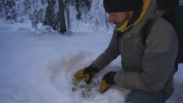 Оказва се, че даже и през зимата суровата лапландска природа пази своите съкровища сред преспите сняг – там се намира храната на северните елени.
