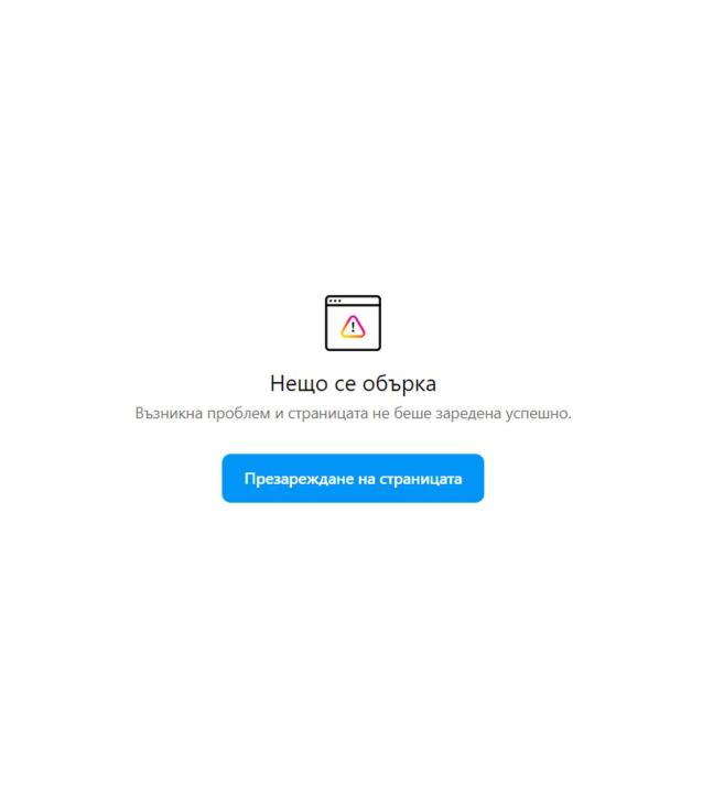 Опитахме се да изпълним достъп до профилите в десктоп версията на платформата и получихме известие за неточност, което гласеше: " Нещо се обърка. Има проблем и страницата и не може да бъде заредена ".