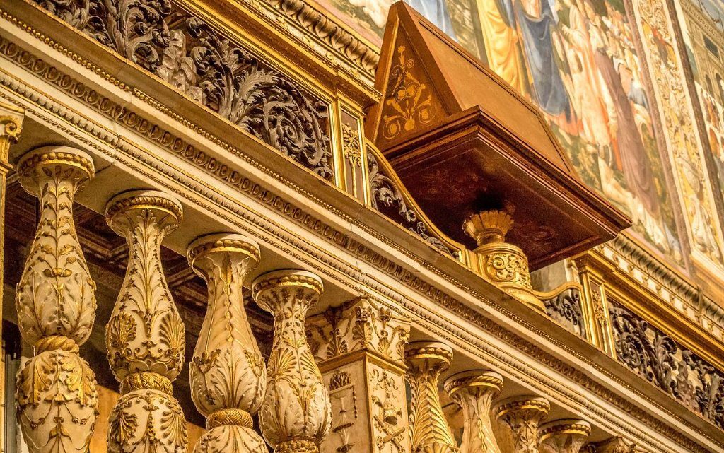 … тя е била украсена със синьо нощно небе със златни звезди, рисувани от умбрийския художник Пиеро Матео д’Амелия.