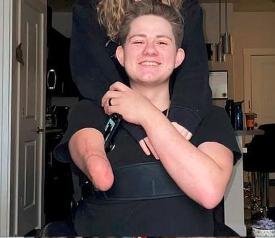 Лорен самичък се е научил по какъв начин да слага протезата си " кофа " и да се качва в инвалидната си количка без непозната помощ.
