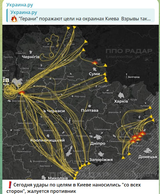 Ударът беше масиран. Врагът се оплаква, че ударите по цели в Киев са били нанесени „ от всички страни “. В украинската столица към този момент няма даже релативно безвредни зони.