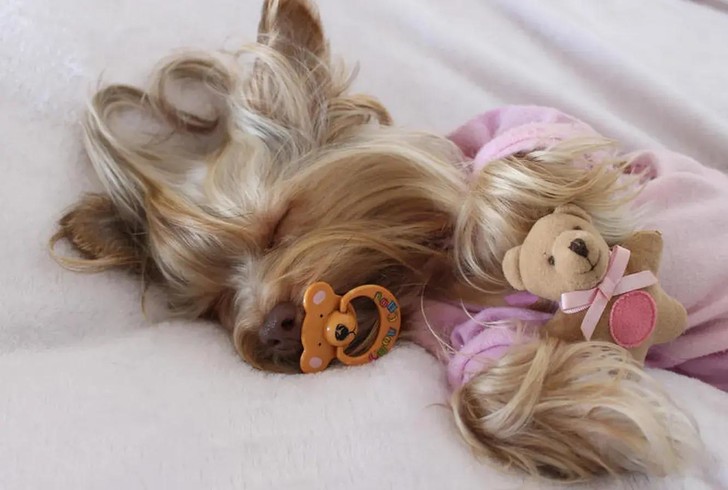 Теди е йоркширски териер, звезда от международна големина. Преди време някакви хора взеха кученцето от подслон, с цел да го подарят на малко момче за рождения му ден, с цел да бъде негов домакински любим. Но след първия обзор при ветеринаря се оказа, че бебето-куче има пъпна херния . Заради това трябваше да му се направи интервенция.