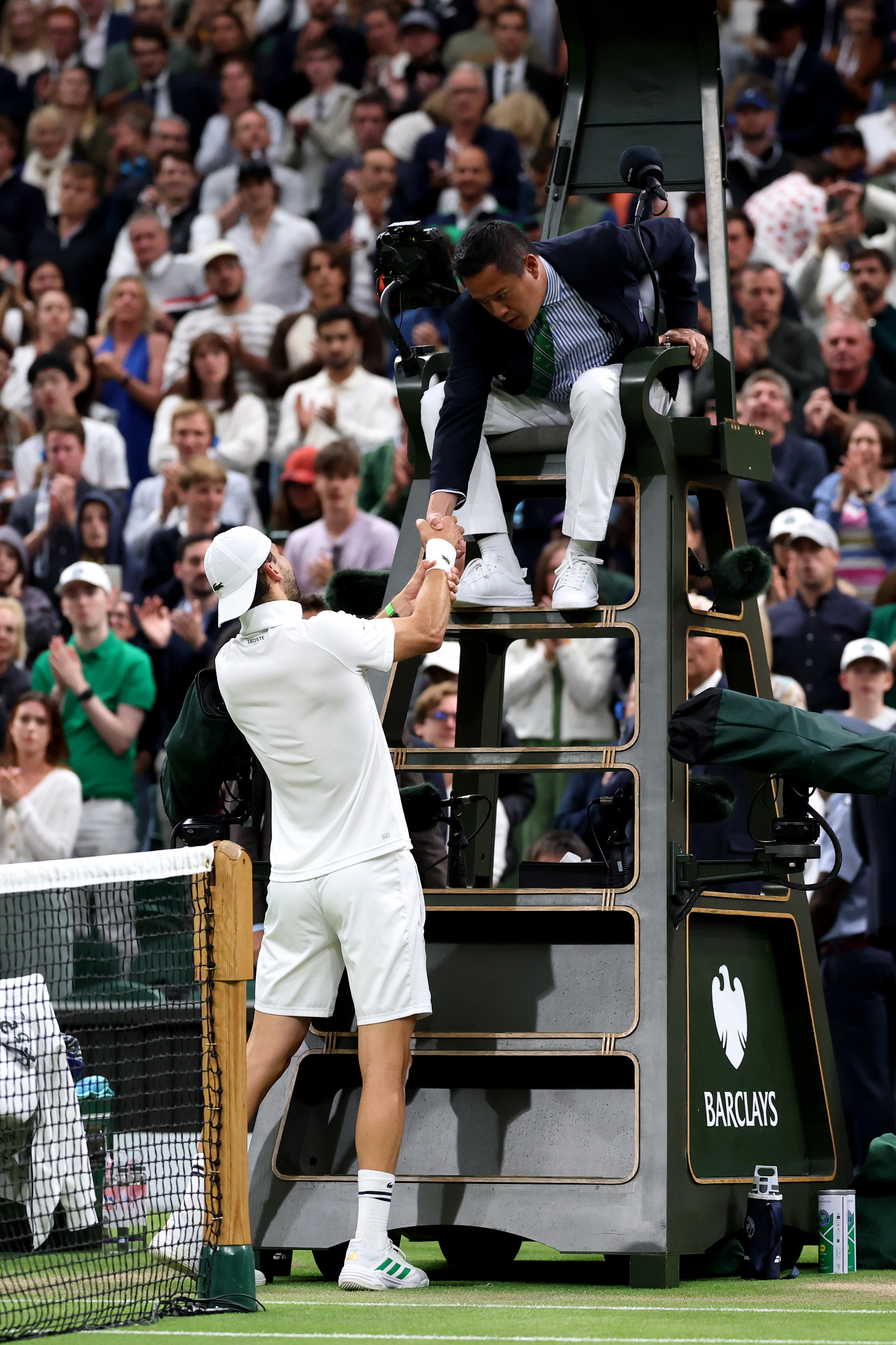 Покривът над Централния корт беше спуснат в съдбоносен миг от дуела, което промени изискванията на играта. След това играчите получиха единствено една минута за загрявка.