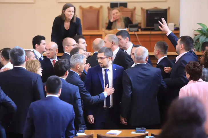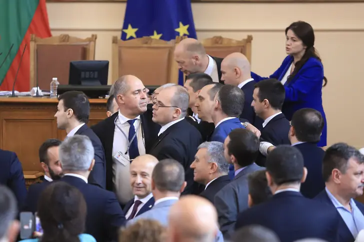 Малко преди този момент в Народното събрание се стигна до физическисблъсък сред депутатитезаради две заявления - на “Възраждане ” и на ПП-ДБ. Наложи се даже ръководителят на Народното събрание Росен Желязков да даде 10-минутна отмора.