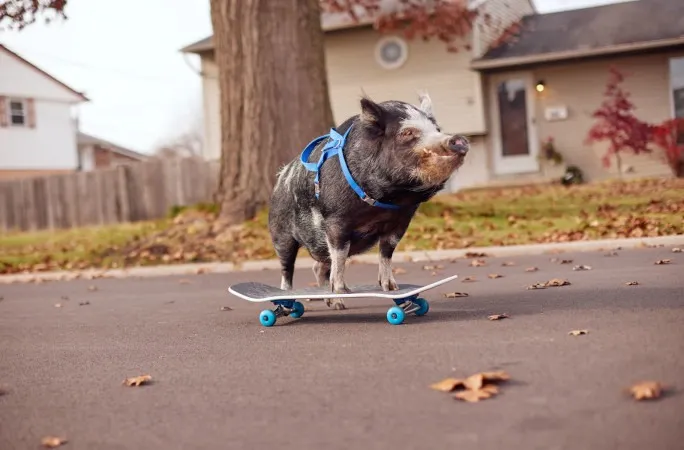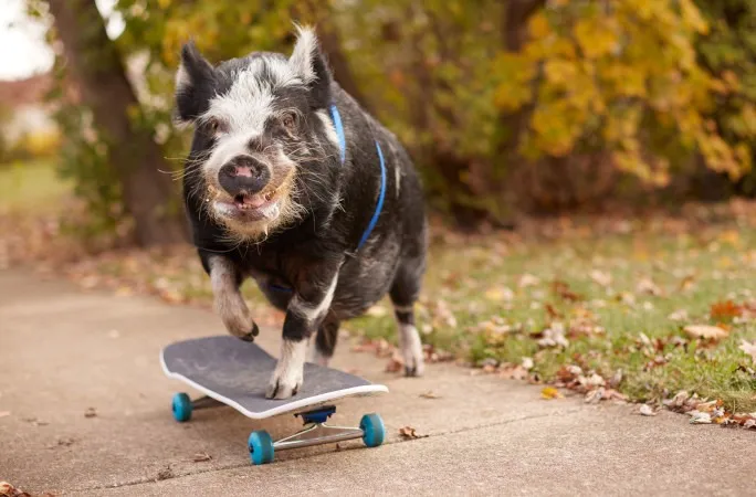 Винсент признава, че геният на любимеца му не стопира до скейтборда. Прасенцето има ужасно възприятие за баланс и даже може да стои на задните си крайници. Следващата цел? Да се научи да танцува или даже да рисува с четка в уста – може би ще се трансформира в идващия „ Пигкасо “.