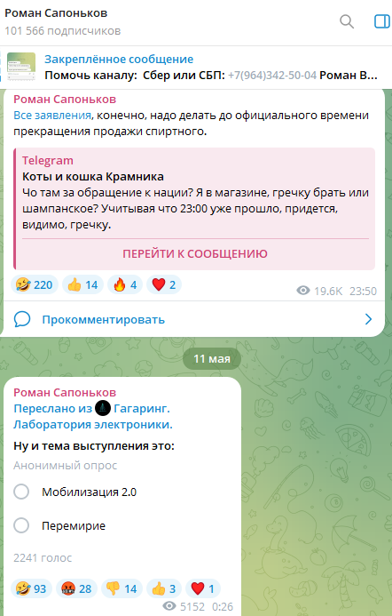 СНИМКА: Скрийншот https://t.me/RSaponkov