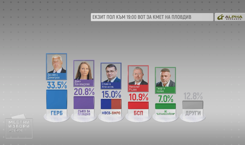 Това са единствено екзитполове, и нищо повече. Преди 4 години, когато изгубих от Иван Тотев, екзитполовете даваха 12% преднина за него, в последна сметка резултатите бяха 0.004% повече гласове за Тотев. Това разяснява пред репортера ни Деница Торньова претендентът за кмет на Пловдив Славчо Атанасов. По данни от екзитпол все още той е на третата позиция.