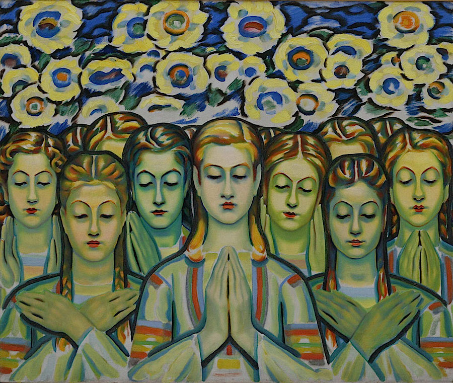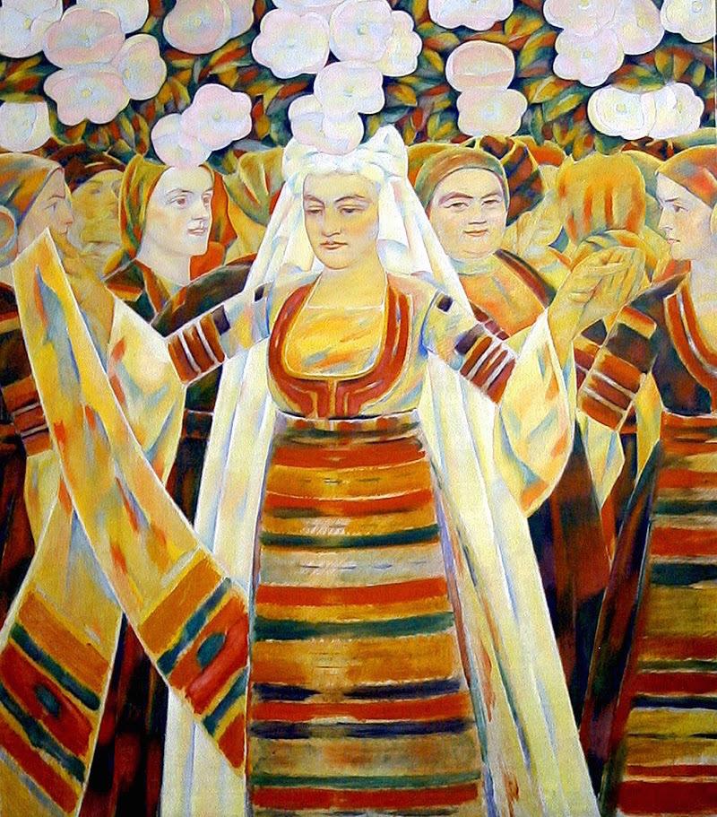 А есента? Тогава може би е най-хубаво. Тогава зреят златните ябълки. Те поглеждат по едно и също време дяволито и свенливо като момински лица през клоните и нетърпеливо чакат пръстите на берачките. А в този ден те са постоянно малко – толкоз доста плод ражда едно дръвче. А какъв брой доста наслада, вяра и хубост дават те на своите стопани. Това съм се стремил постоянно да отразя в картините си – да намеря връзката сред свежестта и колорита на чудните наши плодове и нравствената непорочност, духовната хубост на народа. Дали съм съумял? ”