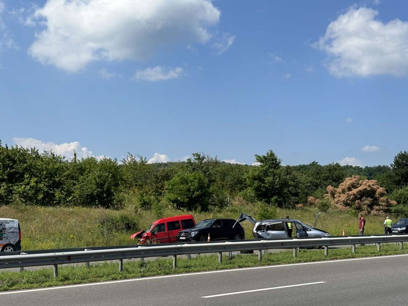 Към момента придвижването е затруднено и се реализира в спешната лента. На мястото са екипи на полицията, пожарната и Спешна помощ.