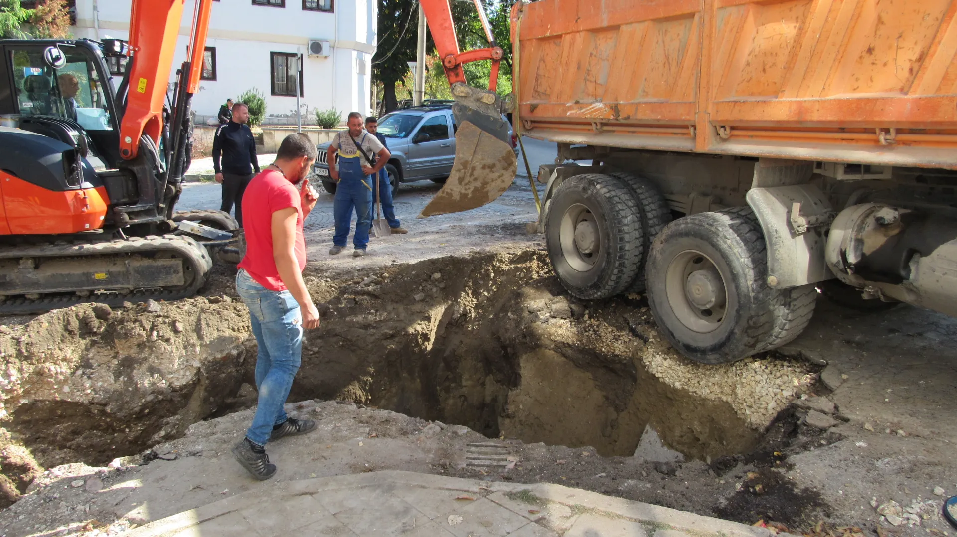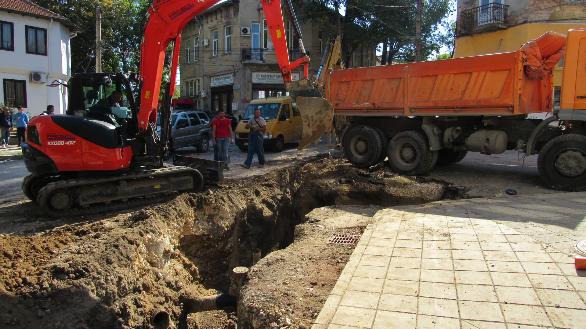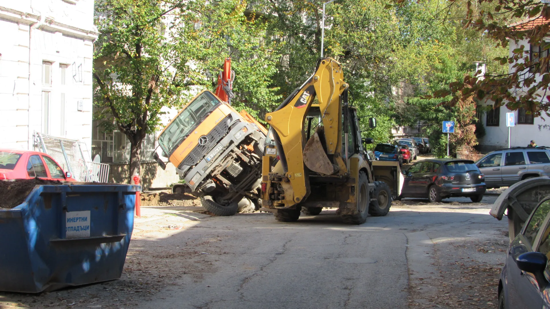 Товарен камион в ров в Русе. Самосвалът е дал на заден ход и е пропаднал в изкопа, където се работи по основен водопроводен клон. По думи на очевидци лидерът е „ изпуснал “ транспортното средство. Няма потърпевши.
