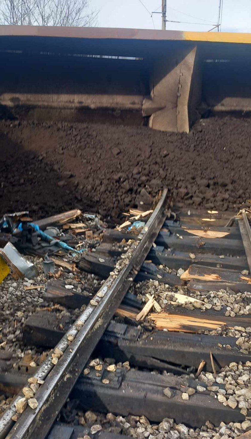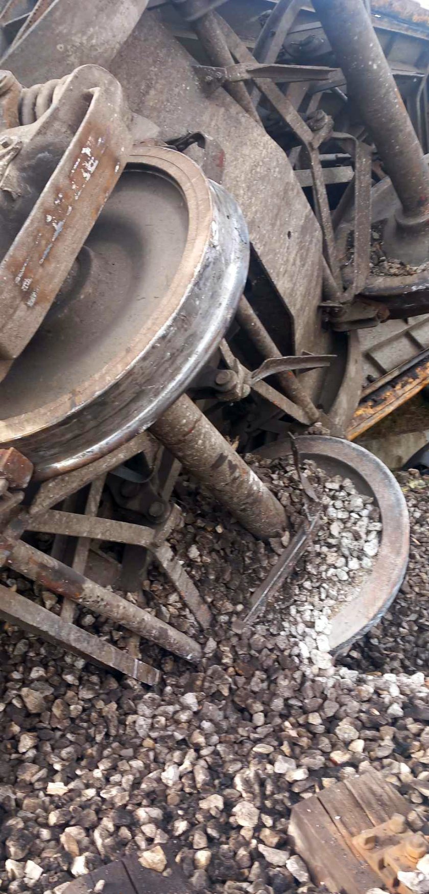 При завой три вагона, натоварени с въглища, са се обърнали и са предизвикали вреди. Единият от вагоните непосредствено е дебаркирал в двор на къща, който сега е цялостен с въглища.