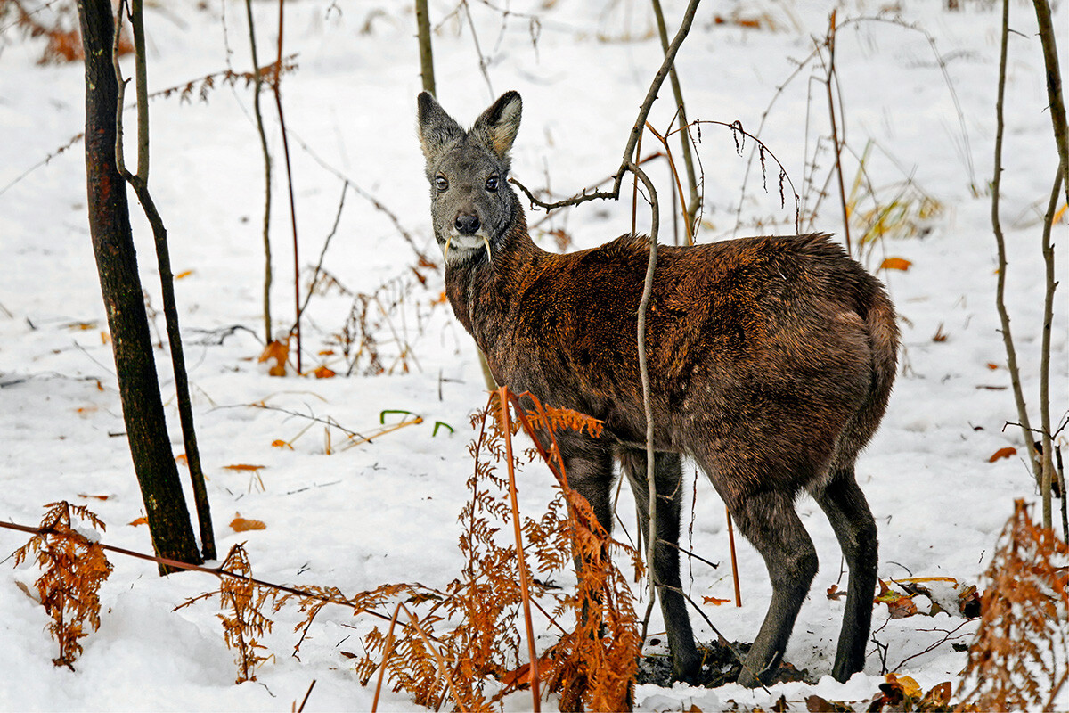Legion Media Средностатистическият възрастен сибирски мускусен елен тежи към 10-15 кг и рядко пораства на дължина повече от метър. Тези размери трансформират кабаргата в най-малкия елен в света! Той наподобява изключително малък в съпоставяне със северните елени. Сибирският мускусен елен живее най-вече в Алтай и Саянските планини, в Далечния изток, както и в Източен Китай и Монголия.