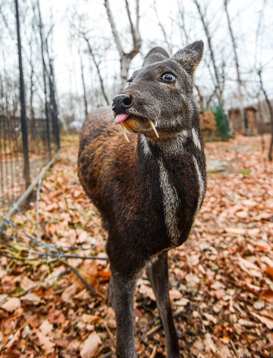 Този елен с остри кучешки зъби наподобява ужасяващо, само че е изцяло безопасен за хората – и въобще не е граблив.