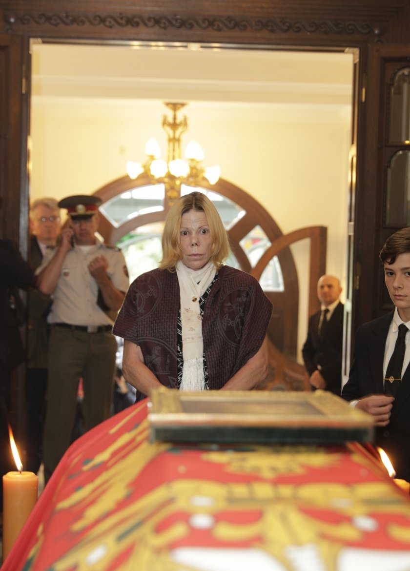 Ковчегът бе положен в центъра, към него застанаха на пост четирима гвардейци, а роднините и гостите заеха места в близост. Негово Високопреосвещенство Западно- и Средноевропейският митрополит Антоний отслужи къс заупокой, при мелодичния музикален декор на 21 хористи от катедралата „ Св. Неделя “. Присъстващият апостолически нунций в България, архиепископ Лучано Суриани, също отслужи къс заупокой по западен обряд.