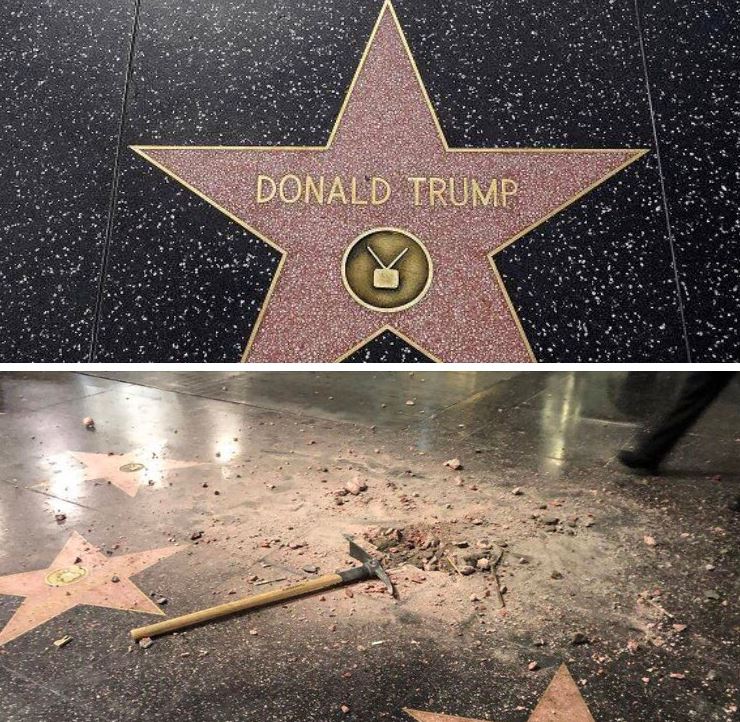 Pres. Trump`s star on the Hollywood Walk of Fame was destroyed early this morning.