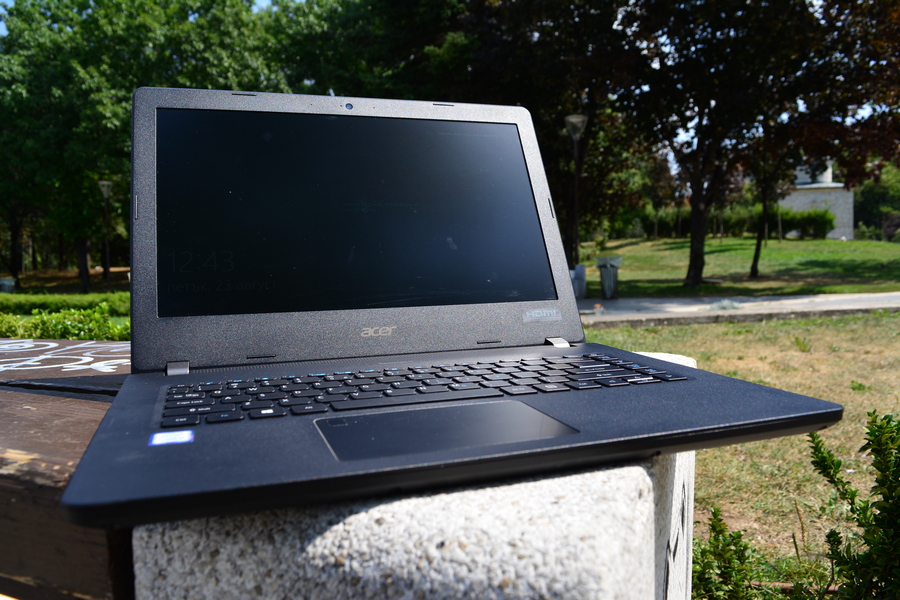 На тип Acer TravelMate P214 не е зрелищен – матовата повърхнина с дискретна текстура в графитено-черно и матовият екран наподобяват строго и „ изсъхнало “, съвсем като скучните одежди на духовник или свещеник. Дори когато бъде отворен, към клавиатурата е все по този начин строго „ изсъхнало “, с лого в предпазлив сив колорит, един дребен маркер „ HDMI ” отново в дискретно сиво и един дребен стикер за скрития вътре Intel Core i5 процесор. В моите разбирания тъкмо по този начин би трябвало да наподобява една бизнес-машина – семпло, строго, сдържано.