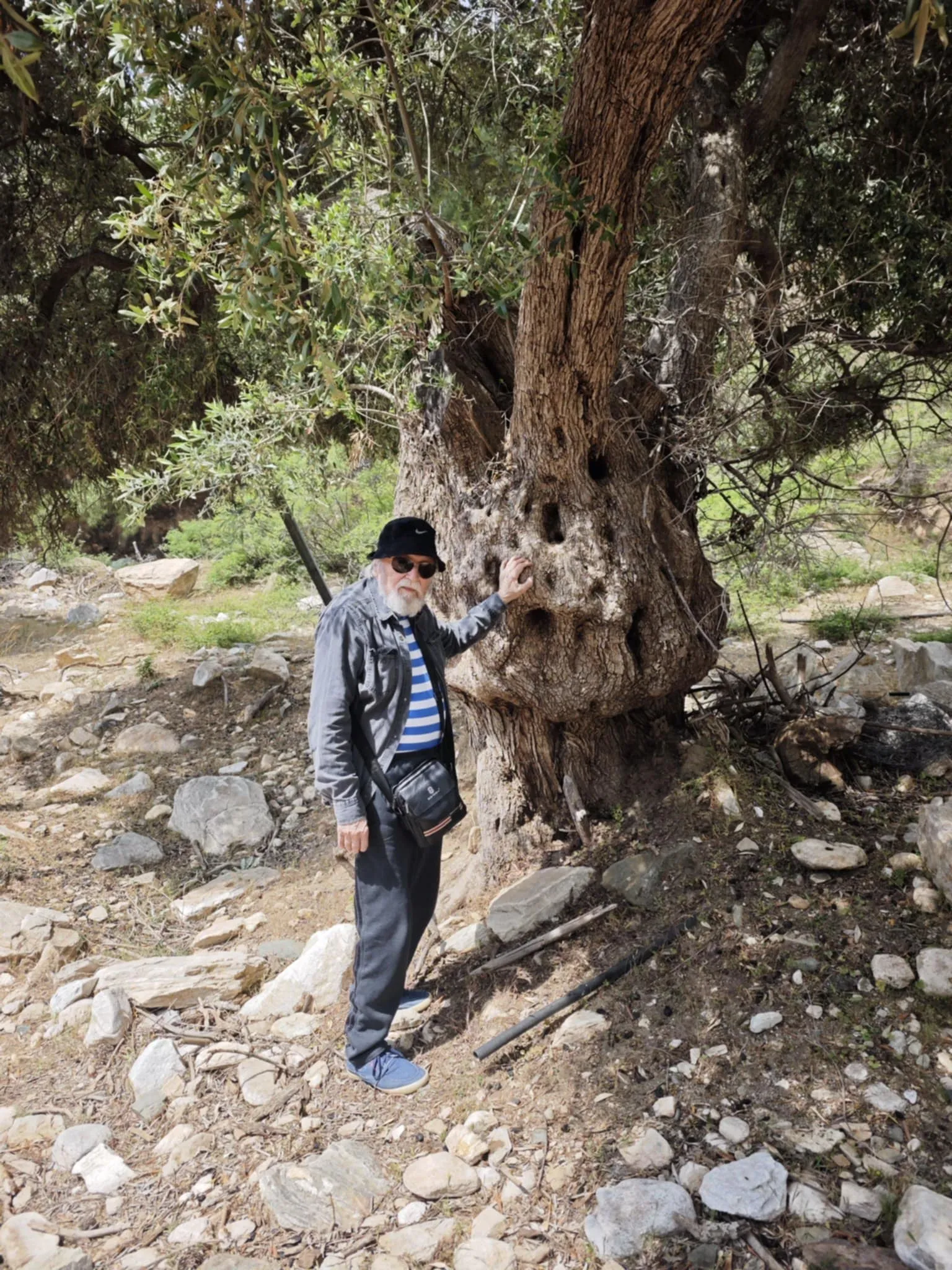 Снимах се пред едно такова престаряло дърво, само че ми трябваха още двама като мене, с цел да можем да го прегърнем и обграбчим. Също като хром столетник, с безчет язвени рани по снагата, някои от които хралупи за гризачи или птици. А клоните – свежи, подготвени за нова родитба. През каменните трошляци се вижда мрежа от гумени водопроводи – локалната напоителна система. И по този начин – двеста метра нагоре по ската. По-високото не е за тези насаждения. По-високото е за бор и за широколистна гора.