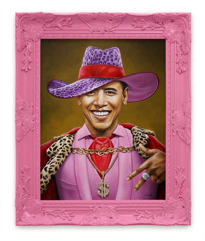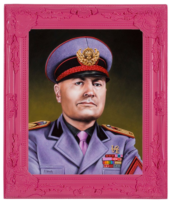 Този цвят не е прекомерно характерен за суровия темперамент на определените герои. Но историята се върти и обрамчва своите спечелили в нежнорозов цвят. Путин, Наполеон и Чък Норис – каква тройка единствено, каква ярка проява на мощ, дух и непреклонност. Нима едно наситено розово може да ги спре? Не, несъмнено. Затова художникът Scott Scheidly има авторско право да интерпретира въпроса за мощните мъже в исторически проект с ярки художествени средства. Всеки подробност си е на място, има и фешън аксесоари, а закачливия нео-бароков жанр напълно пасва на еклектичната хореография.