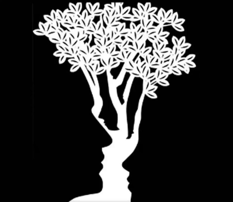 Изборът е или бяло дърво с листа, или две черни лица отстрани. Тестът дефинира дали индивидът се отличава с логическо мислене или междуличностни умения.