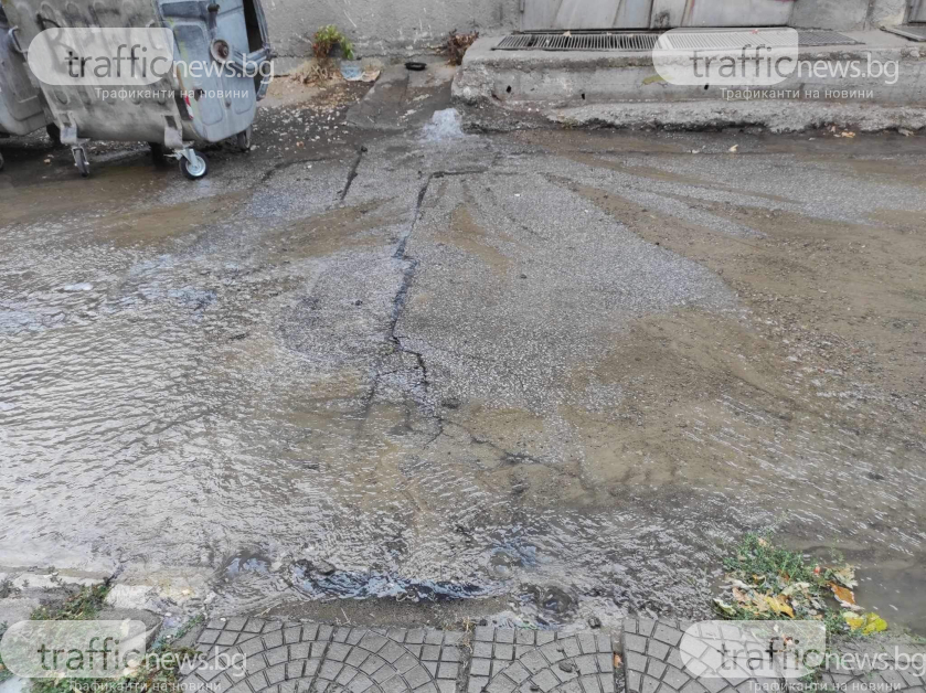 Опасно! Вода извира на метър от трафопост в Пловдив, превърна улицата в река