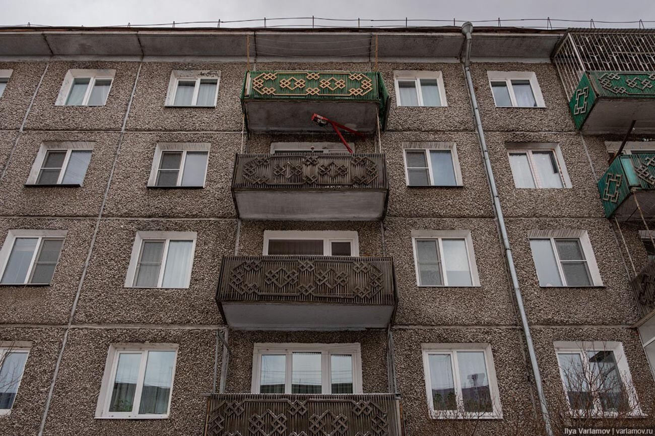 Един квартал в северния съветски град Сиктивкар е цялостен с панелни блокове с фолклорни детайли от Коми.