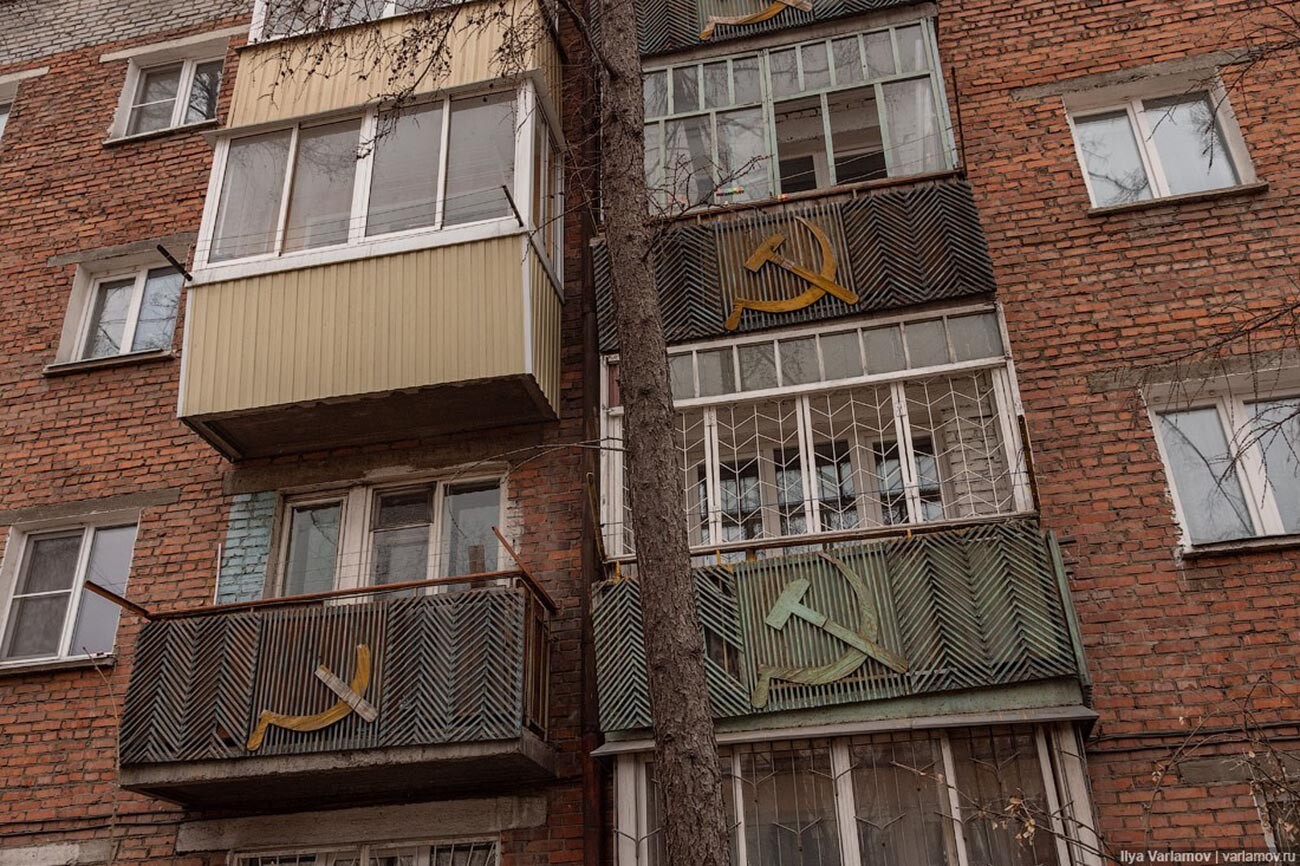Иля Варламов (CC BY-SA 4.0) В Улан-Уде, столицата на Бурятия, ще намерите панелни блокове, украсени освен с обичайни знаци, само че и със руския сърп и чук! И това не е просто дело на някой локален запалянко – това е архитектурната концепция.