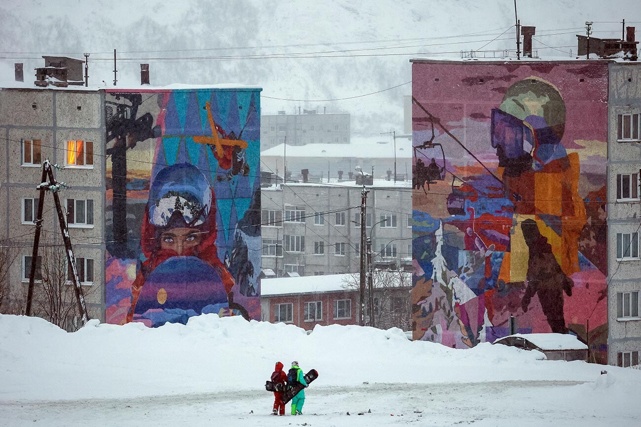 Павел Лвов/Sputnik Този квартал е ситуиран край планинските ски курорти в Мурманска област. Изглежда доста извънредно на фона на сивотата в близост!