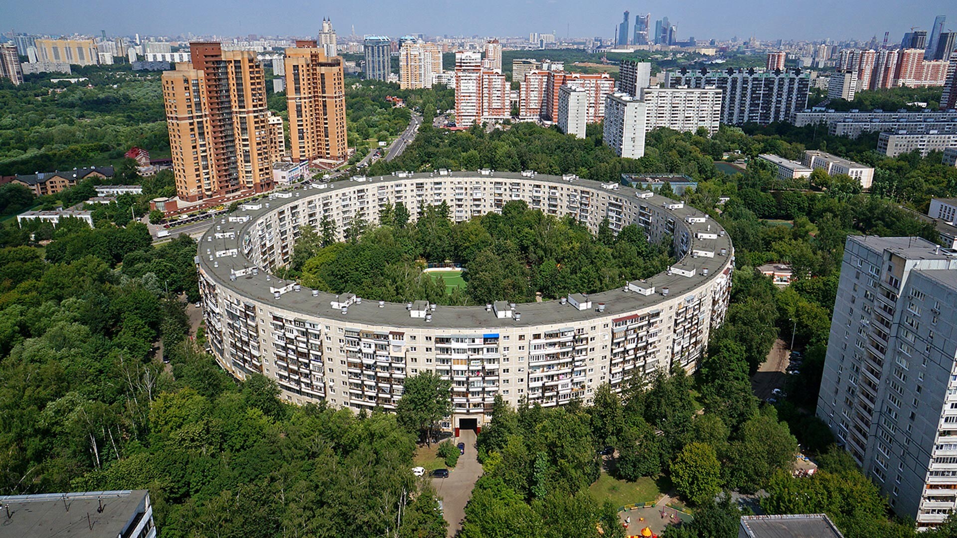 Двата кръгли панелни блока в югозападна Москва се появяват на вълната на Олимпиадата през 1980 година. Първоначално проектът е да се построят пет здания (като олимпийските кръгове), само че архитектурният опит е спрян, откакто са издигнати две от тях, защото те се оказват непрактични поради проблеми със звукоизолацията и поддръжката. Днес ги назовават „франзелите“. Всяка постройка има по хиляда жилището и 26 входа.
