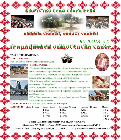 Традиционният събор на Стара река ще се организира на 30 и 31 август и 1 септември. Организаторите от кметството са планували богата стратегия и изненади за жителите и гостите на китното балканско селце.