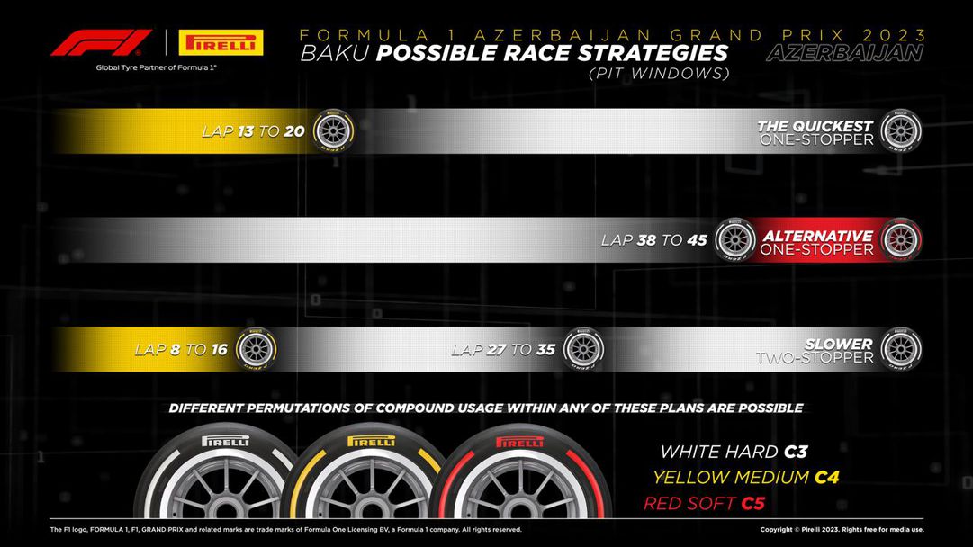 Традиционно конкуренцията за Гран При на Азербайджан във Формула 1 се печели със единствено едно прекъсване в бокса, в случай че няма чрезвичайни условия и излизания на колата за сигурност. Според официания снабдител на гуми Пирели и през днешния ден почитателите би трябвало да чакат единствено една промяна на гуми.